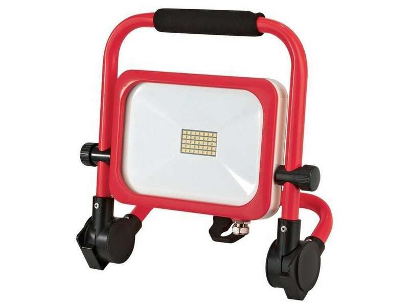 Projecteur portatif à led pour une utilisation intérieur/extérieur. Cadre en alu. Puissance lumineuse : 1800 lumens. 5000 Kelvin (température de couleur blanche pour des utilisations spécifiques comme les travaux de précision). Patte de fixation murale. Le pied se replie pour un rangement plus facile. Consommation : 20 W. IP54. Longueur de câble : 1,80 m. Dimensions : 265 x 275 x 150 mm.