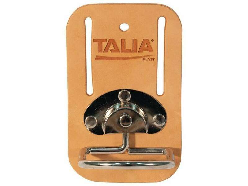 Support cuir avec fente double pour passage ceinture. Porte-marteau boucle orientable. Fermeture à pression. Livré avec cavalier pour brochage facial en rayon.